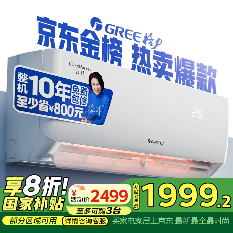 格力(GREE)大1匹 云佳 新一级能效 变频冷暖 壁挂式空调挂机 格力空调KFR-26GW/NhGd1B 家电补贴价格:2499.00元!