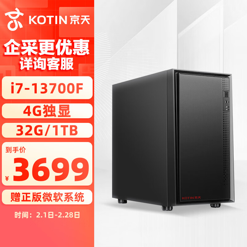京天 Blitz 755 i7-13700F/RX550 4G/1T固态/32G/商务键鼠/WiFi/家用办公采购组装电脑台式机游戏主机价格:3799.00元!