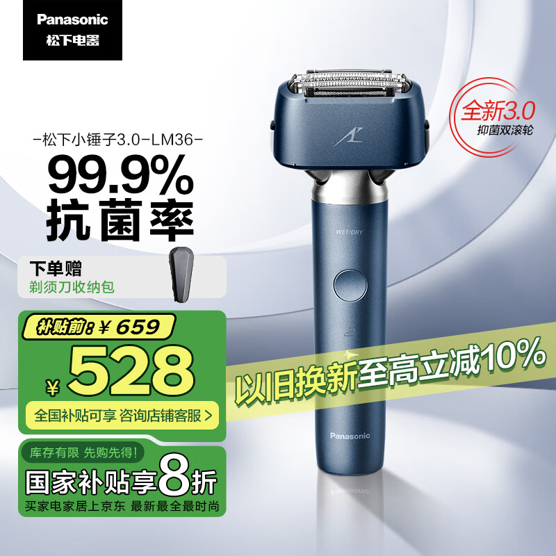 松下(Panasonic)全新小锤子3.0剃须刀电动往复式顺滑滚轮男士刮胡刀Type-c 情人节礼物送男友LM36雾蓝色价格:659.00元!