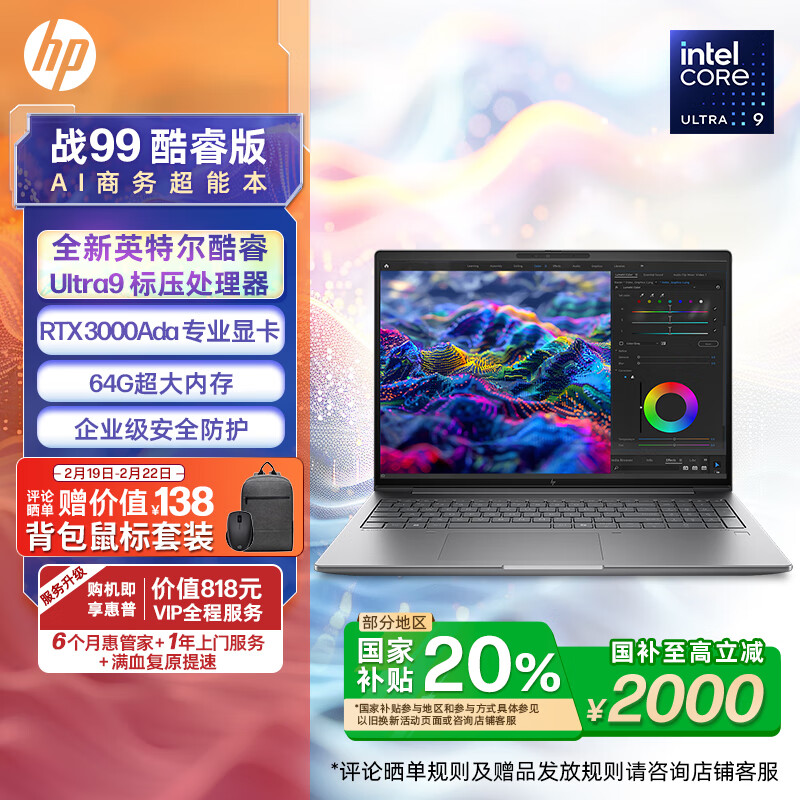 惠普(HP)【补贴】战99 高性能笔记本AI Deepseek工作站 16英寸Ultra9 185H 64G 2T RTX3000Ada Winpro价格:26999.00元!