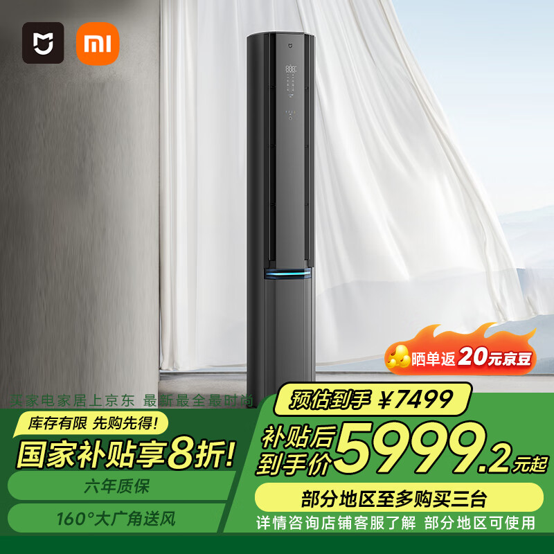小米(MI)米家 3匹 超一级能效 自然风Pro双出风 变频 空调柜机72LW-NA11/M1A1 家电补贴价格:7499.00元!