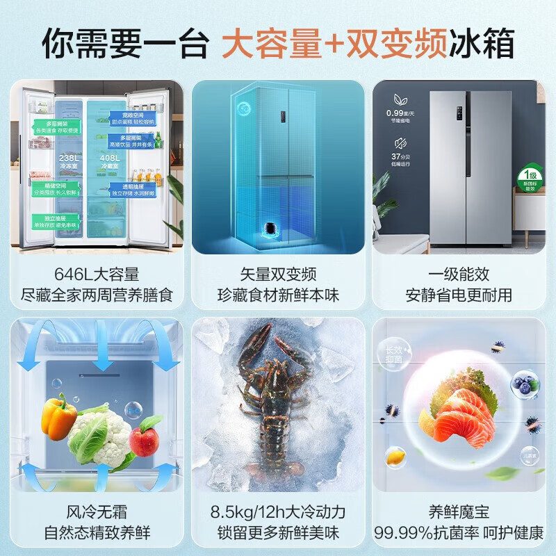 容声(Ronshen)646升双开门家用对开门二门双门电冰箱一级能效变频风冷无霜超大容量BCD-646WD11HPA补贴20%价格:2499.00元!