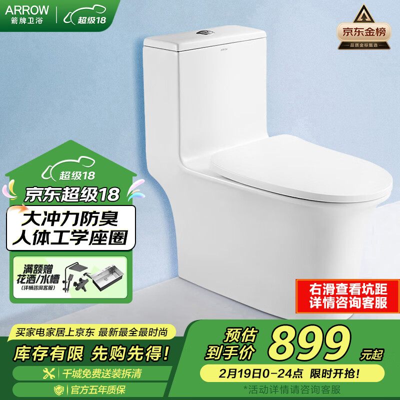 箭牌(ARROW)抽水马桶家用卫浴虹吸坐便器普通座便节水坐厕 1级水效AE12617UL价格:899.00元!