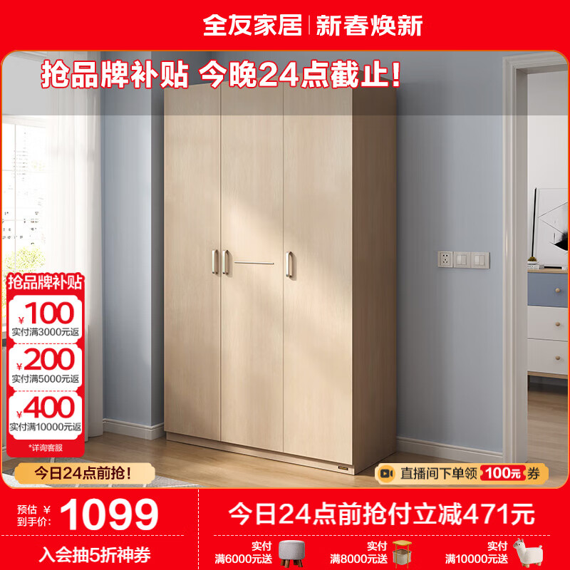 全友家居 衣柜自然原木风木纹衣柜多规格组合卧室储物柜子106302价格:1570.00元!