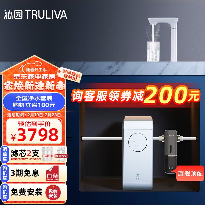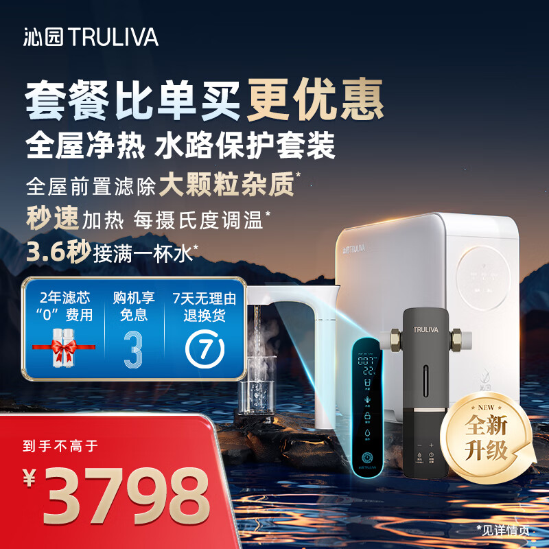沁园(TRULIVA)净水器机家用曜日800G净热一体机 即热直饮水一体机UR-S5846H+智能自动冲洗前置过滤器P-O7712价格:3798.00元!