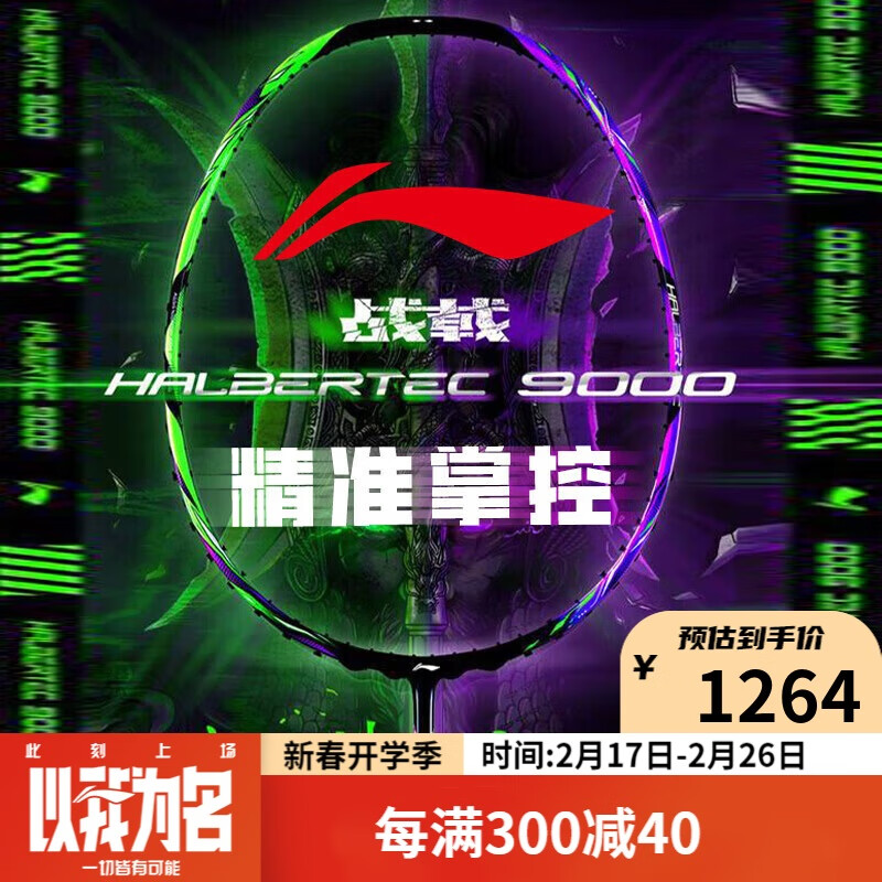 李宁(LI-NING)羽毛球拍战戟9000全碳素专业比赛球拍控制单拍 4U空拍价格:1424.00元!