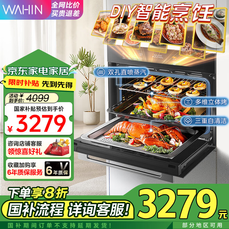 华凌HT500微蒸烤一体机嵌入式51-60L大容量变频智控自清洁【微蒸烤炸炖五合一】美的出品家用蒸烤箱55L价格:4099.00元!