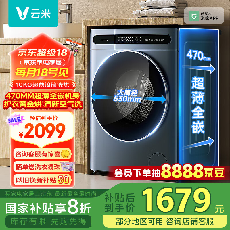 云米(VIOMI)滚筒洗衣机全自动 以旧换新 10公斤超薄大筒径 洗烘一体机Master1 空气洗除菌 WD10FE-B6A送装一体价格:2099.00元!