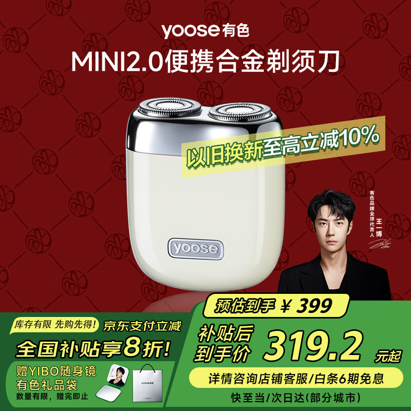 有色(yoose)【王一博推荐】剃须刀便携款合金电动刮胡刀男士 生日情人节礼物送男生胡须刀礼盒 MINI2.0 亚麻白价格:399.00元!