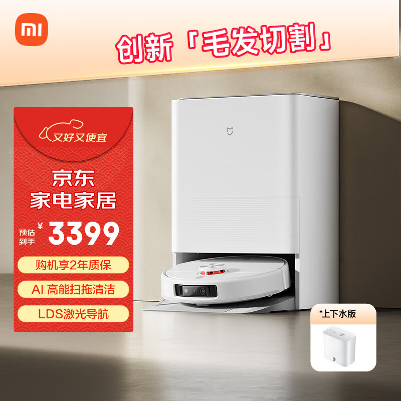 米家全能扫拖机器人M30Pro 切割毛发防缠绕 热水洗 AI智能扫拖一体全自动扫地机洗地【上下水版】价格:3399.00元!
