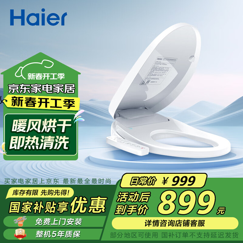 海尔(Haier)智能马桶盖 即热暖风款 电动加热马桶圈 全自动坐便盖 V-168Plus价格:899.00元!
