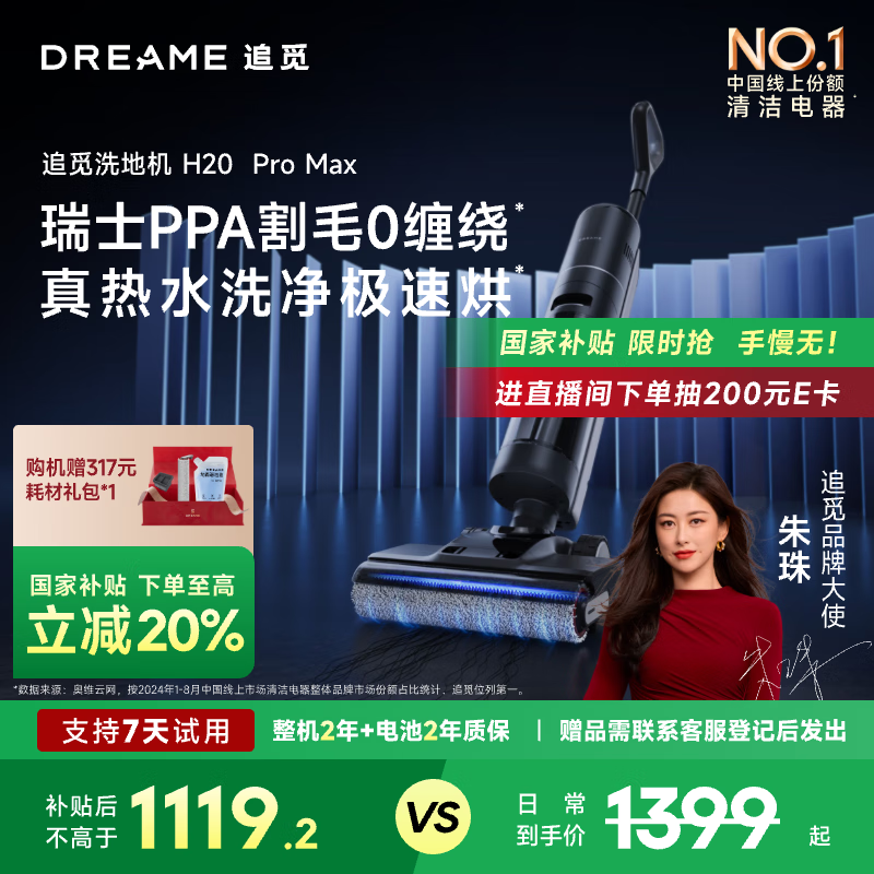 追觅H20 PRO MAX 旋锋 防缠绕无线智能高温热水洗地机吸拖扫一体热风速干家用大吸力吸尘器升级款价格:1399.00元!