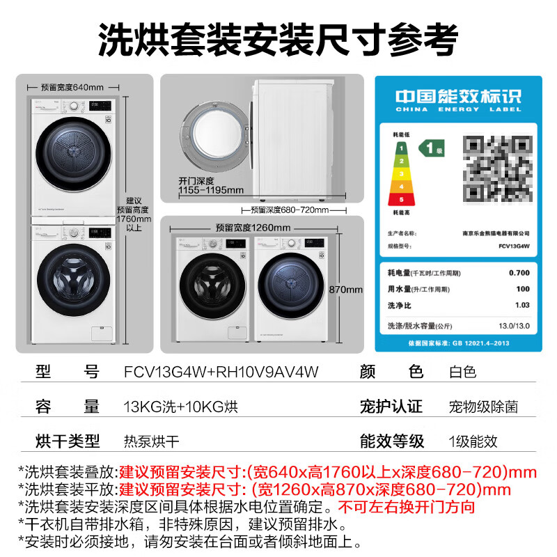 商品名称:LGFCV13G4W+RH10V9AV4W