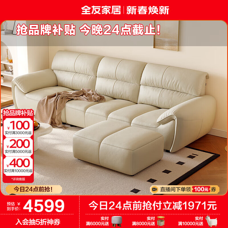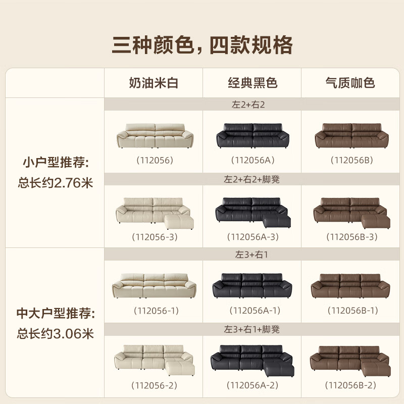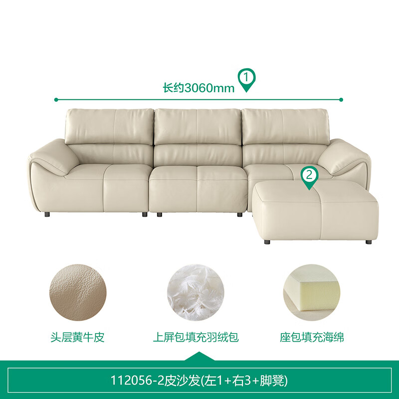 全友家居 简约头层牛皮艺沙发大户型客厅四人位钢琴键真皮沙发112056价格:6570.00元!