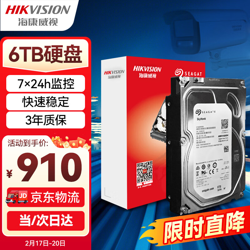 HIKVISION海康威视 希捷 6TB监控硬盘 希捷硬盘 6TB硬盘 录像机专用监控硬盘 电脑主机硬盘6T价格:910.00元!