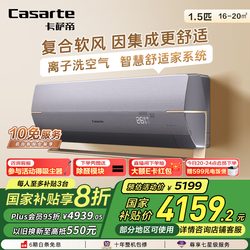 卡萨帝(Casarte)1.5匹 星云 离子洗空气技术复合软风空调挂机一级能效变频CAS3516BAA(81)VU1补贴以旧换新价格:5199.00元!