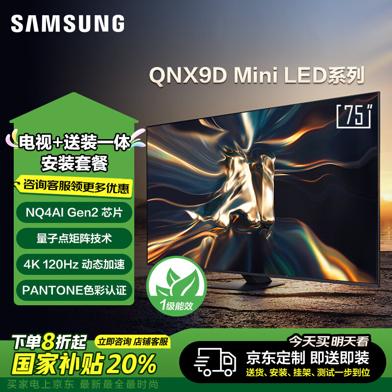 三星(SAMSUNG)75QNX9D【包安装版(固定挂架送装一体)】 75英寸 Neo QLED量子点 Mini LED 超薄4K 一级能效价格:10398.00元!
