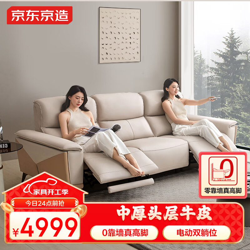 京东京造零靠墙格度2.0真皮电动沙发 头层牛皮中小户型米白色2.7m双电动价格:5499.00元!