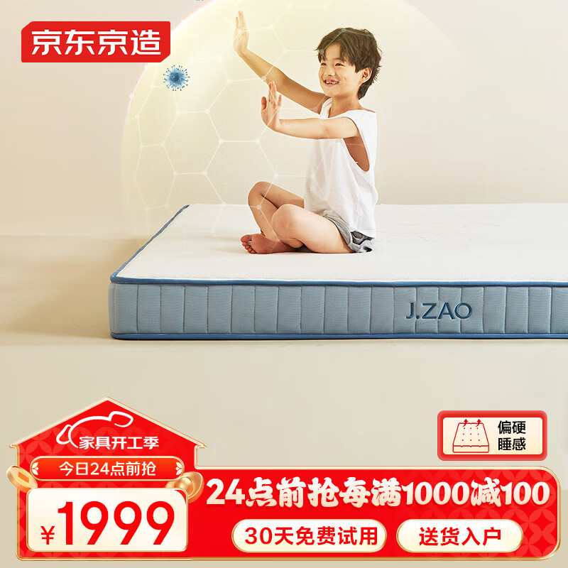 京东京造陪伴儿童床垫 0胶水独立袋弹簧 3D黄麻舒脊 可拆洗面料1.8×2米价格:2199.00元!