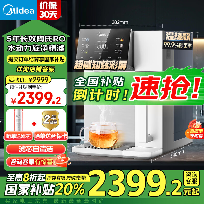 美的(Midea)魔方台式净水器加热直饮一体机净饮机即热饮水机家用即热式净饮一体机RO反渗透免安装 JR2288T-RO价格:2999.00元!