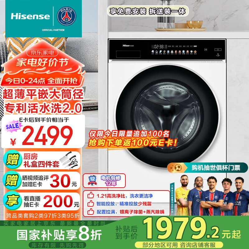 海信(Hisense)洗烘一体机滚筒洗衣机全自动 10公斤大筒径1.21高洗净比活水洗钢琴师HD10IE3以旧换新补贴价格:2599.00元!