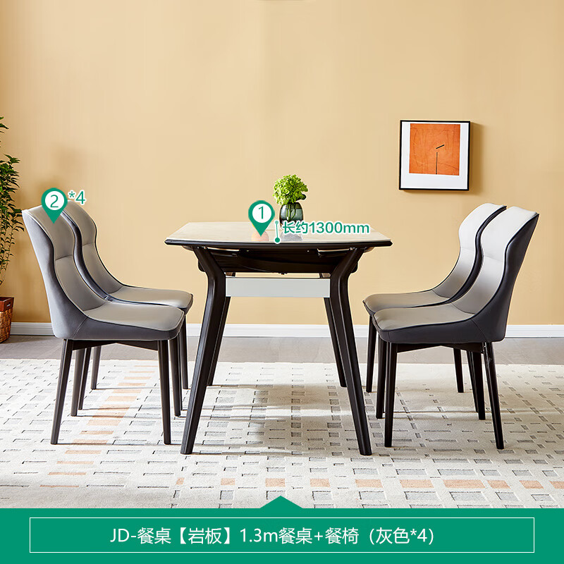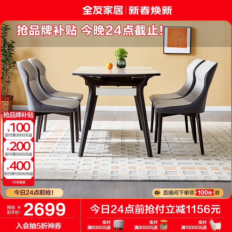 全友家居 家用轻奢风岩板餐桌椅组合客餐厅吃饭桌子一桌四椅子价格:3855.71元!