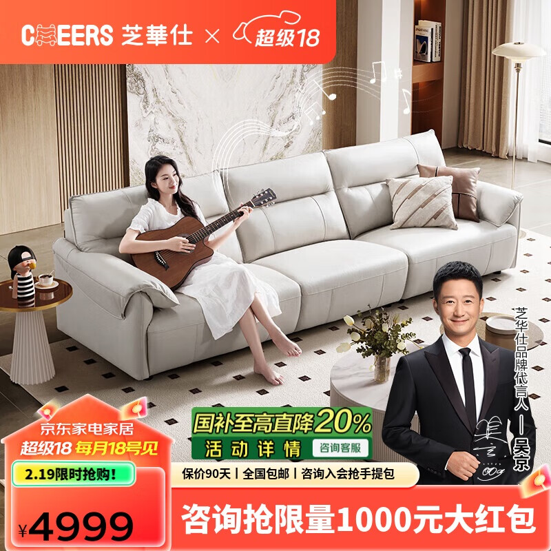 芝华仕(CHEERS)真皮沙发现代简约轻奢客厅家具芝华士直排3095四人白价格:4999.00元!