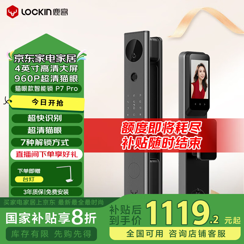 鹿客(lockin)智能门锁可视猫眼大屏指纹锁电子锁密码锁P7 Pro价格:1399.00元!