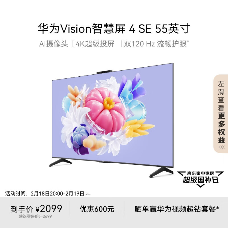华为Vision智慧屏 4 SE 55英寸 Mate 70投屏好搭档 120Hz高刷 游戏电视机以旧换新排行前十名HD55KUNL价格:2099.00元!
