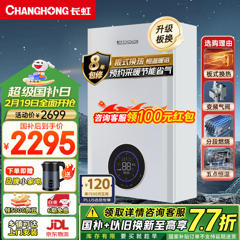 长虹(CHANGHONG)燃气壁挂炉天然气壁挂式供暖锅炉地暖气片采暖热水两用板换式燃气热水器洗浴澡以旧换新L1PB20-C2价格:2699.00元!