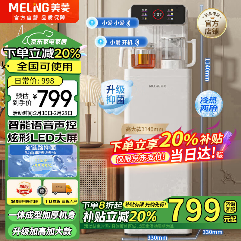 美菱(MeiLing)智能语音茶吧机大屏遥控立式饮水机下置水桶一体柜家用制冷制热全自动机冷热款MY-C231B(语音款)价格:1099.00元!