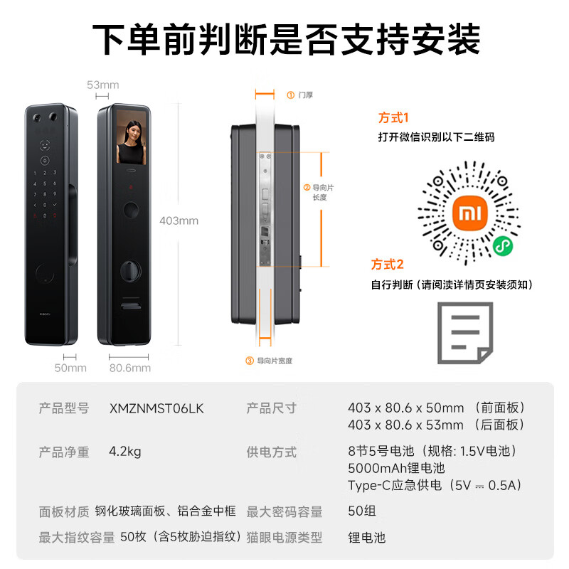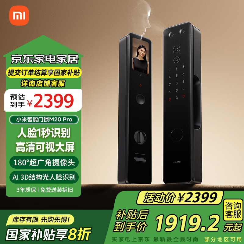 小米智能门锁M20Pro 3D人脸识别 可视猫眼大屏指纹锁电子锁密码锁价格:2399.00元!