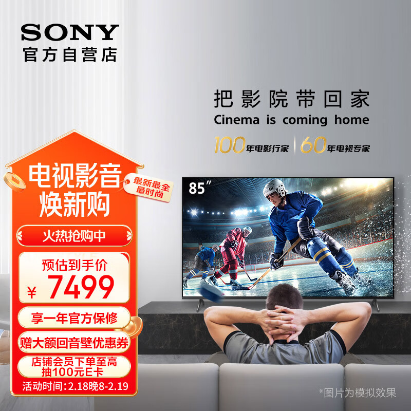 索尼(SONY)【限时京东免费安装】KD-85X85K 85英寸 4K HDR 屏智能电视 广色域 120Hz 客厅巨幕价格:7499.00元!