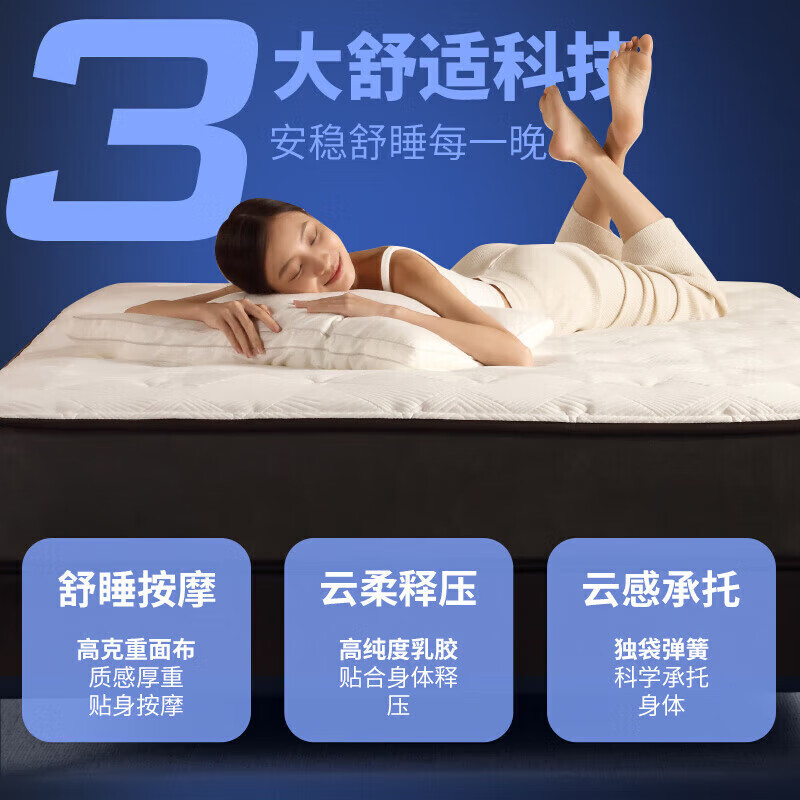 2、因为自己腰部一直不是很好,所以选择了一款性价比以及舒适度非常好的一款床垫子,真的是非常的舒服躺上去,价格也是可以接受。物美价廉