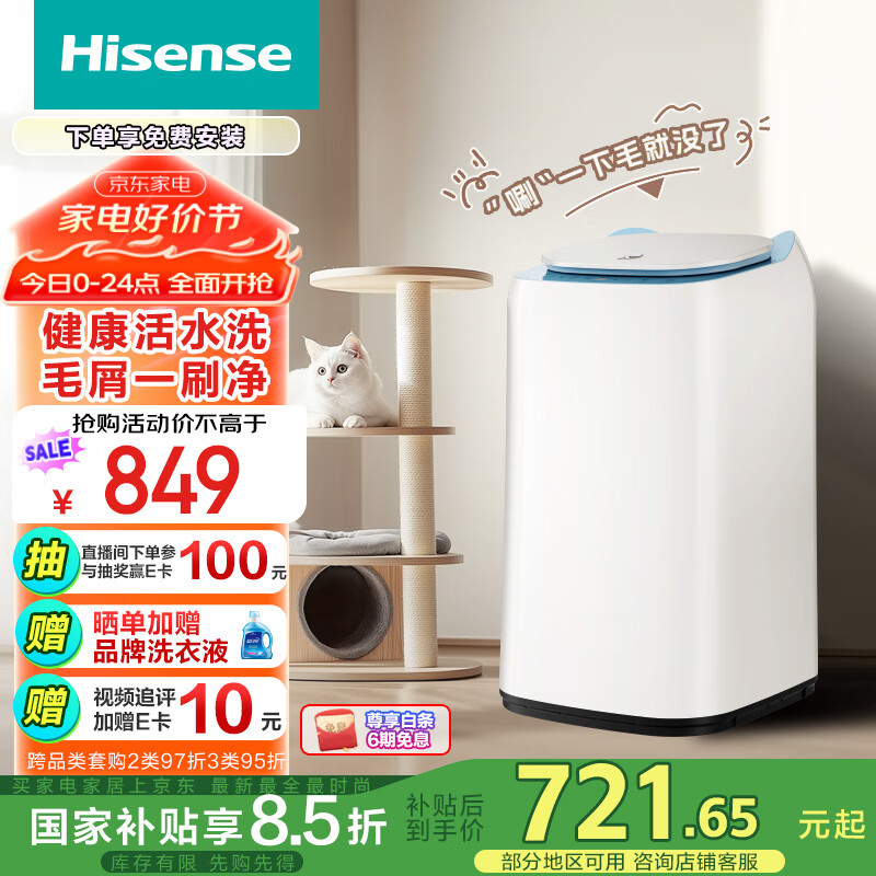 海信(Hisense)小哈利毛易刷波轮洗衣机全自动3公斤迷你洗衣机无孔内桶活水洗婴儿HB30DM56H以旧换新补贴价格:849.00元!