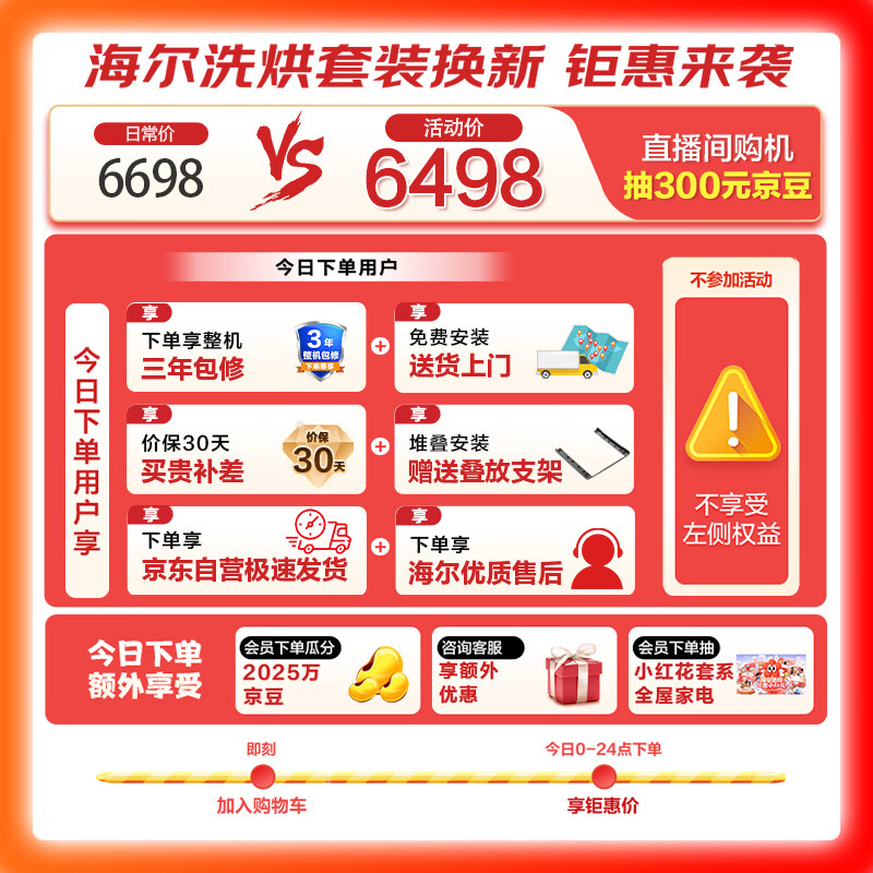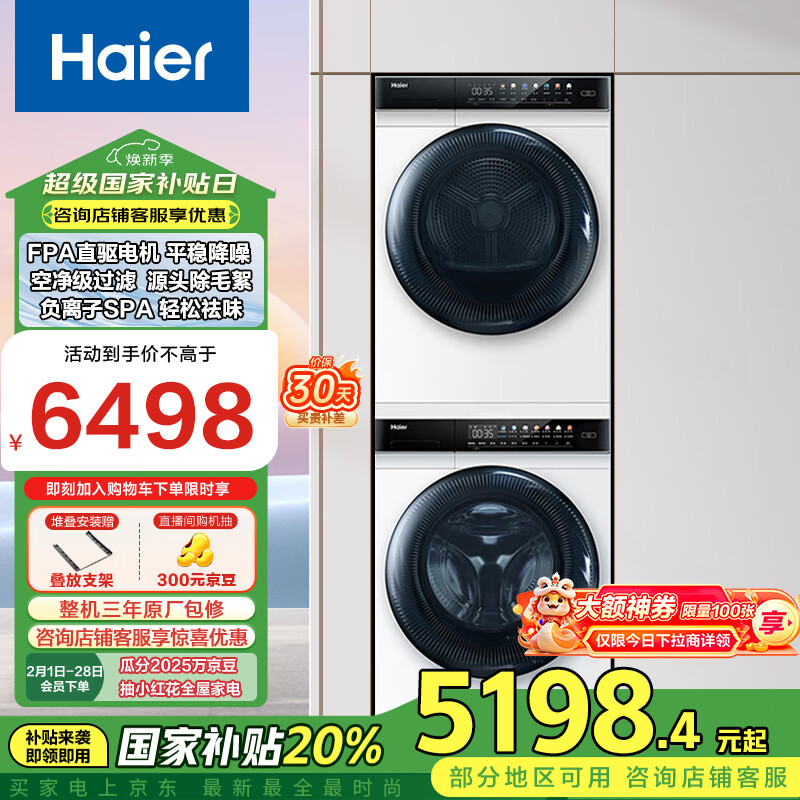 海尔(Haier)经典白色洗烘套装 10KG滚筒洗衣机全自动+热泵烘干机家用 MATE7W+MATE7W以旧换新 家电补贴价格:6498.00元!