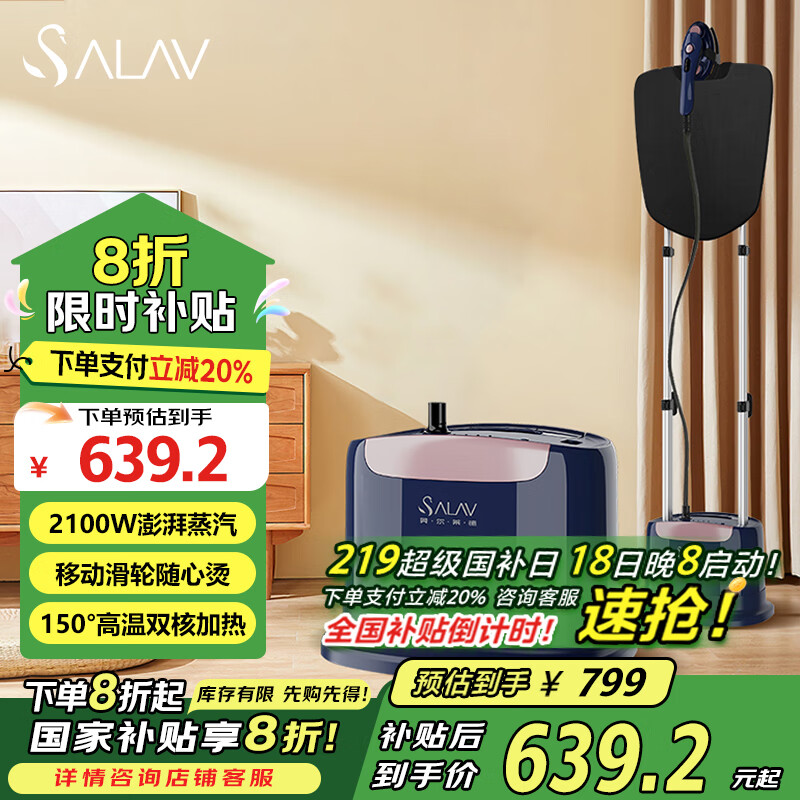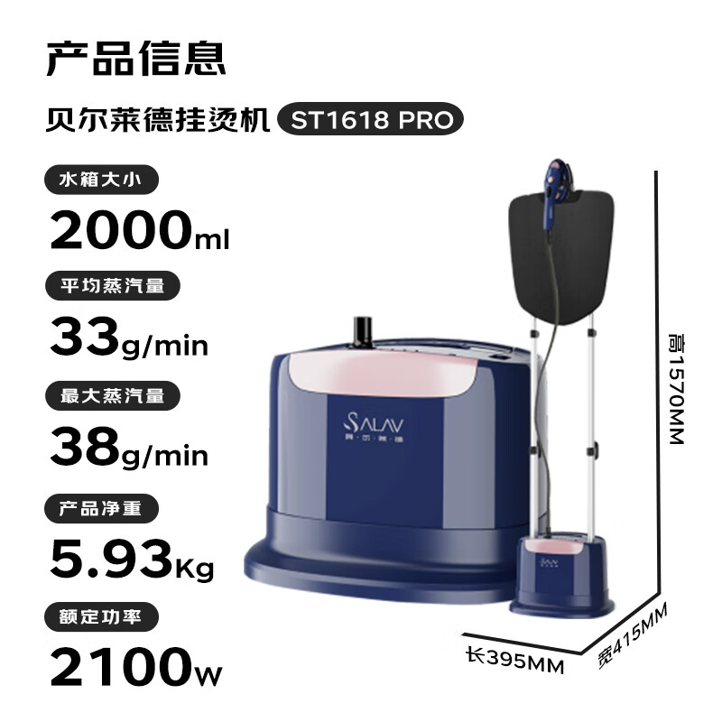 贝尔莱德(SALAV)蒸汽挂烫机家用手持立式熨烫机商用挂烫机服装店双杆立式电熨斗双核加热烫衣机ST1618 Pro价格:799.00元!