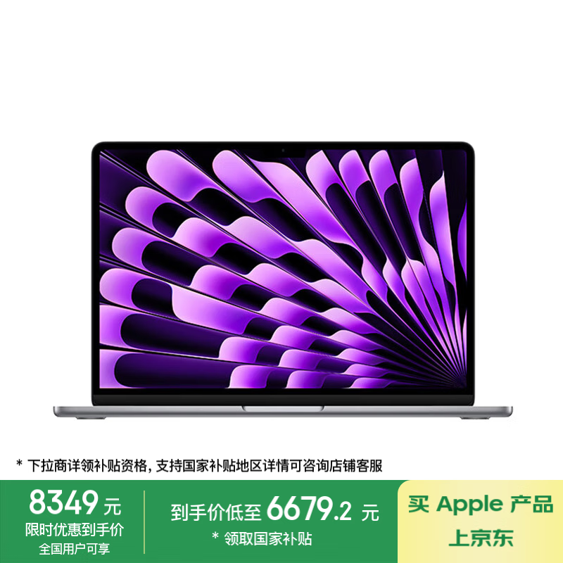 Apple/苹果AI笔记本/2024MacBookAir13.6英寸M3(8+10核)16G 256G 深空灰电脑Z1B60016P【定制】价格:8349.00元!