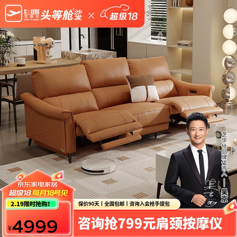 芝华仕(CHEERS)头等舱绅士皮沙发零靠墙现代简约电动功能家具50611B橙三A价格:4999.00元!