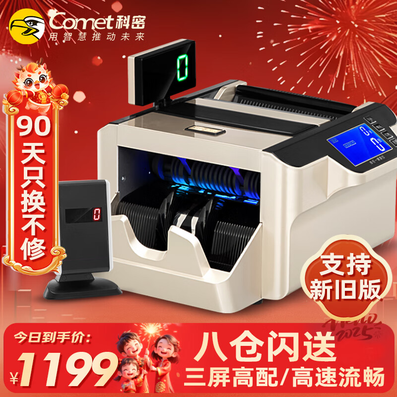 科密(comet)验钞点钞机支持新版人民币验钞 小型便携银行商用家用专用 新旧币混点三屏语音收银支付B9价格:1199.00元!
