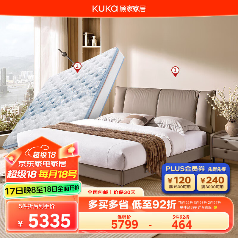 顾家家居(KUKA)现代简约皮床双人床主卧8055菲林咖+M0099C 1.8米价格:5799.00元!
