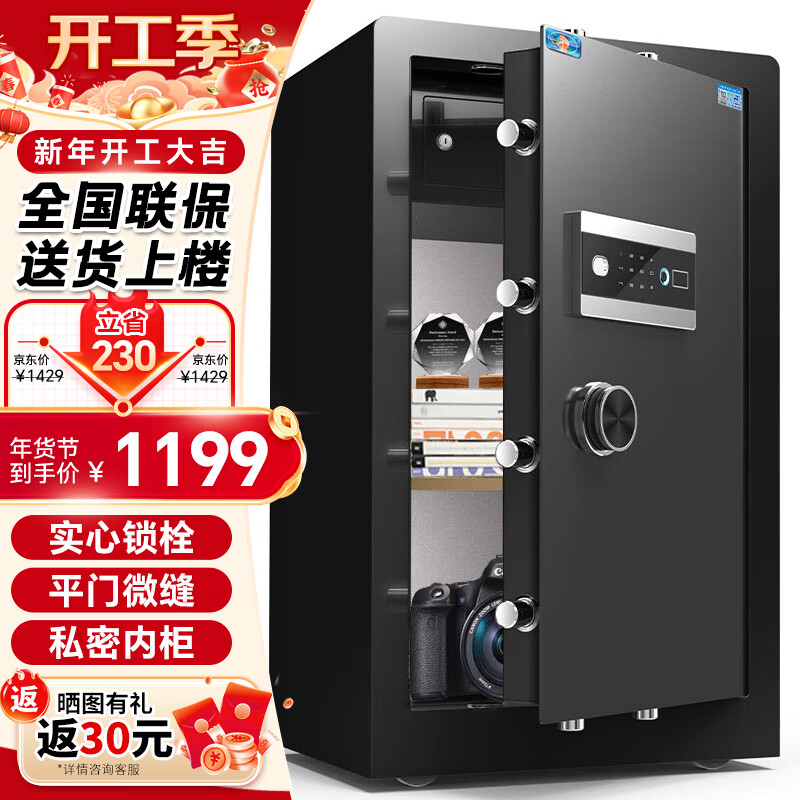 虎牌保险柜家用办公小型指纹密码保险箱全钢防盗床头保密柜财务专用保管箱博雅系列黑色80cm价格:1359.00元!