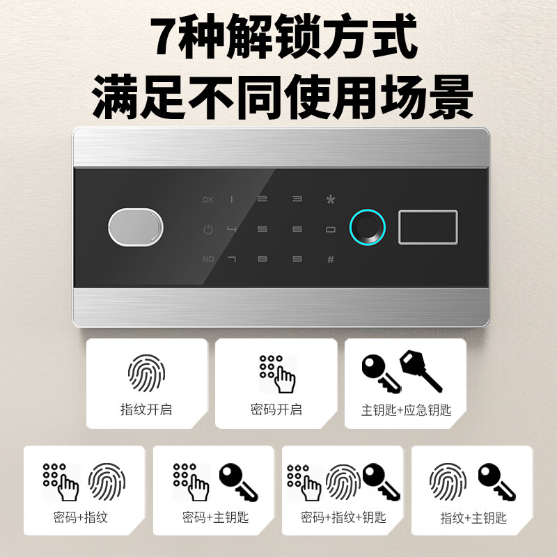 1、美观大方,骨架牢固可靠,设置简单,开启非常方便,还考虑到紧急情况,配了两把急用钥匙,非常贴心,还配了把保险柜锚固在墙上的螺栓,固定后更加保险。