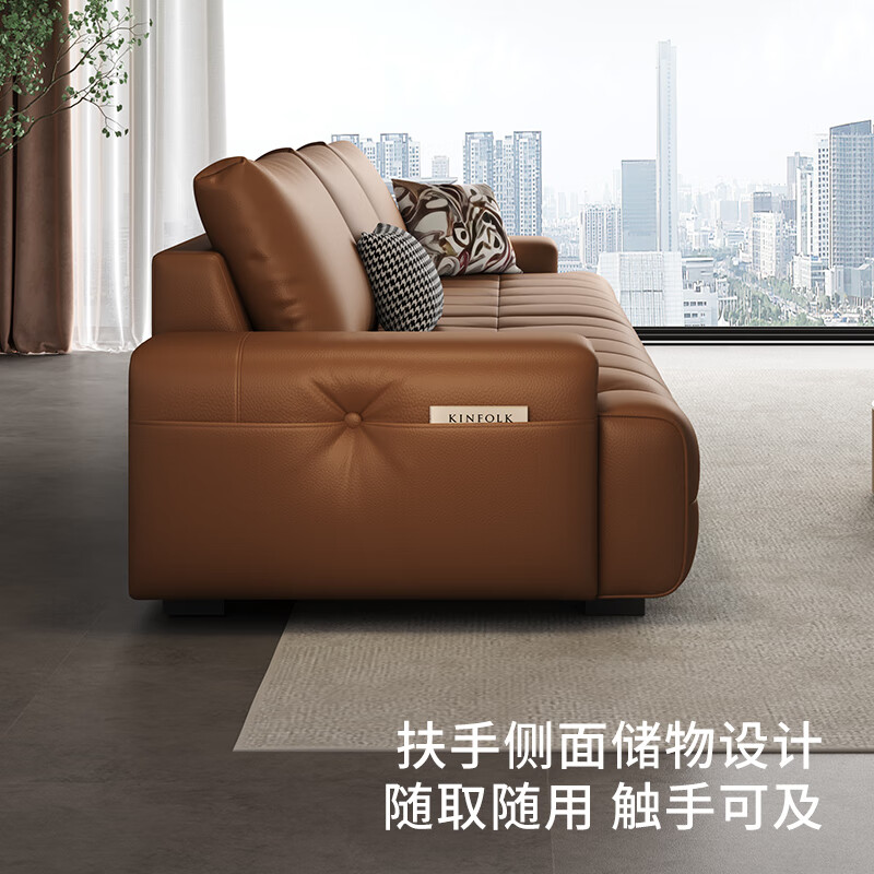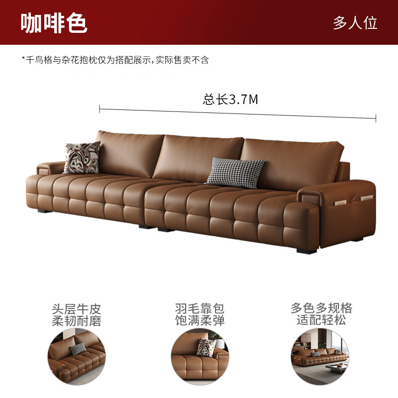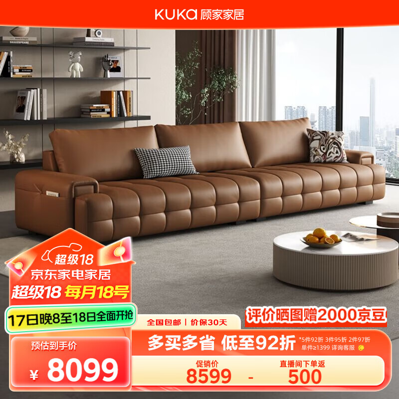 顾家家居(KUKA)劳伦斯沙发头层牛皮沙发客厅大户型别墅1219咖啡色3.7M多人位价格:8599.00元!