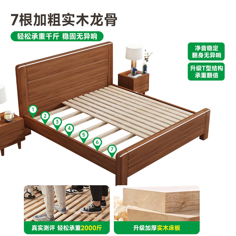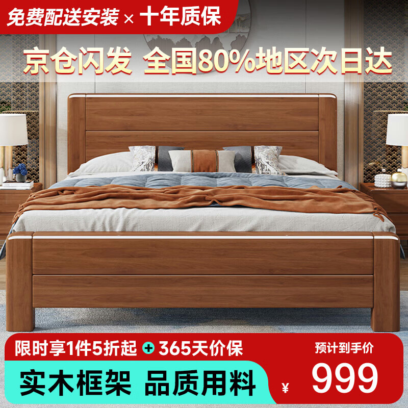 品族中式实木床现代双人主卧床单人床出租屋床JC-101 1.8米框架床价格:1998.00元!