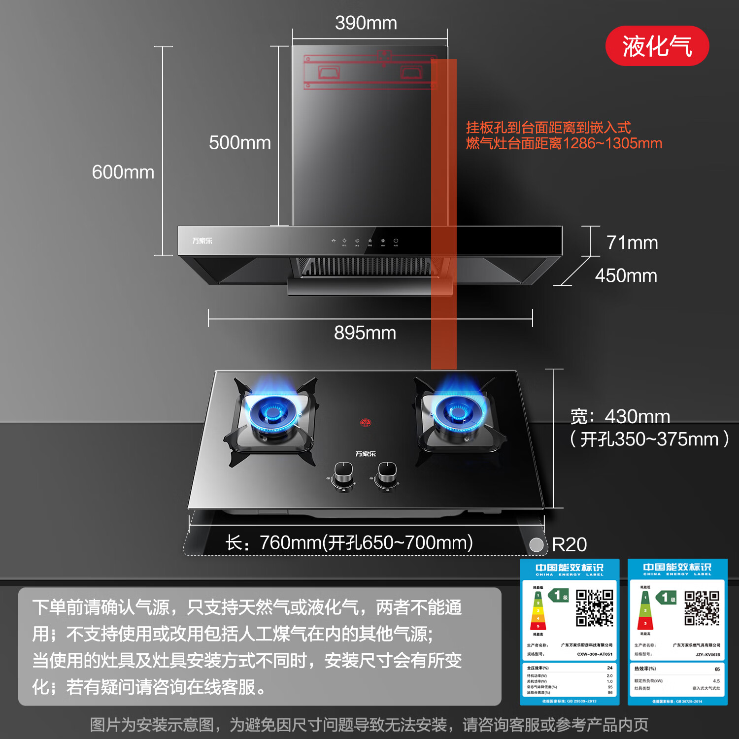 烟机安装尺寸:900±50mm