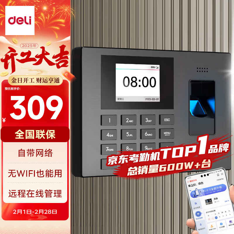 得力智能云考勤机 指纹打卡机 自带4G网络模块 无需wifi 在线管理 实时查看 指纹考勤机3960 4g价格:339.00元!
