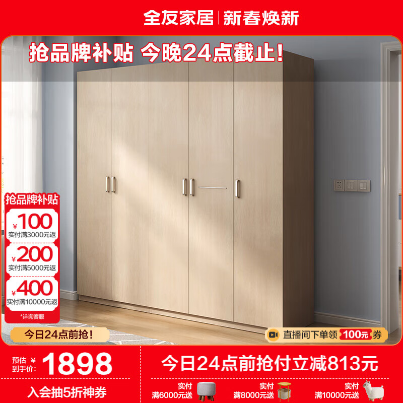 全友家居 家用现代简约成品衣柜组合卧室衣橱立柜简易储物柜子106302价格:2711.43元!