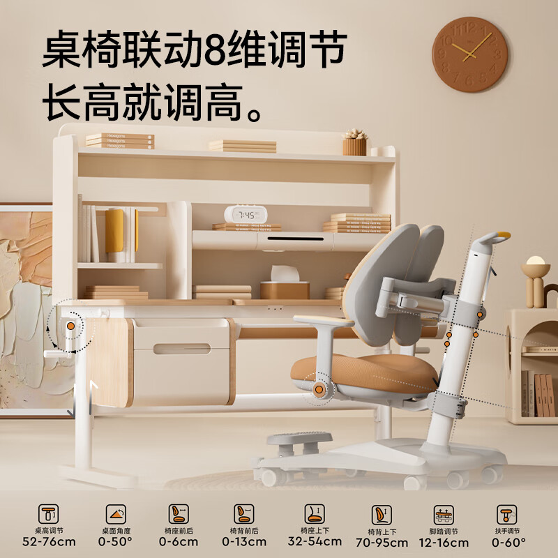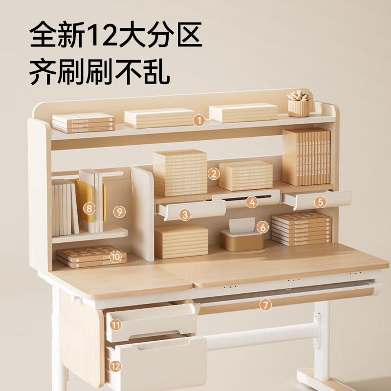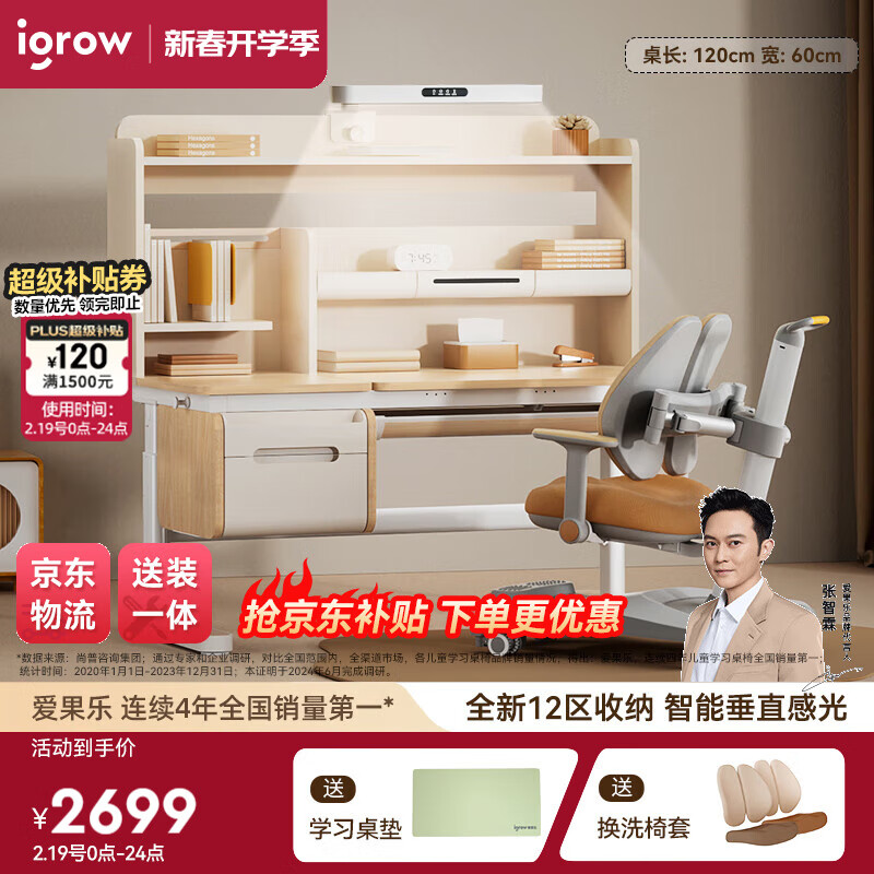 爱果乐(IGROW)咖啡猫儿童书桌学习桌椅写字桌【12分区收纳 桌灯联动护目】1.2m价格:3199.00元!
