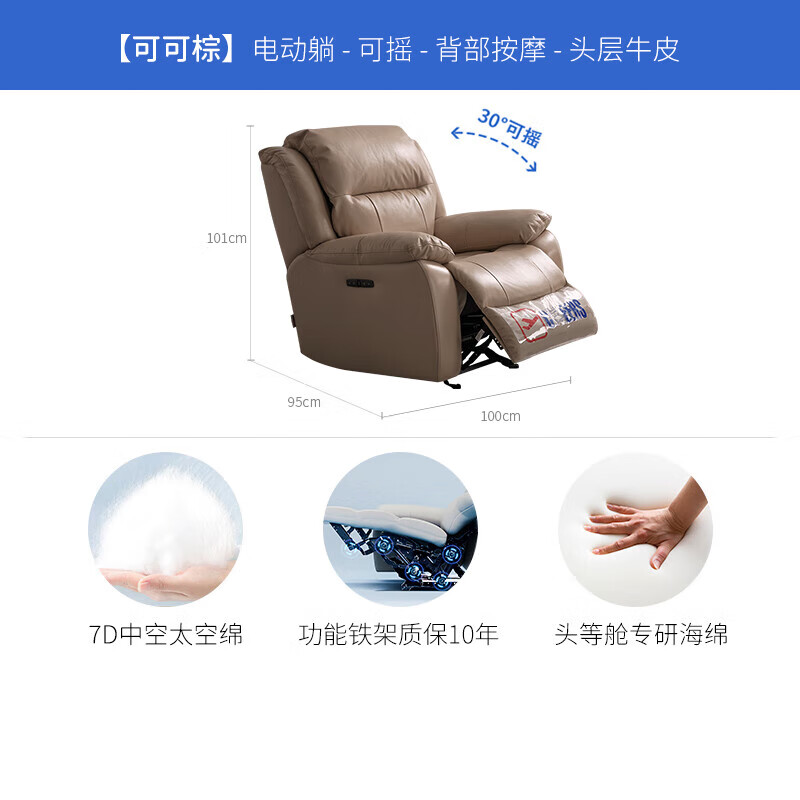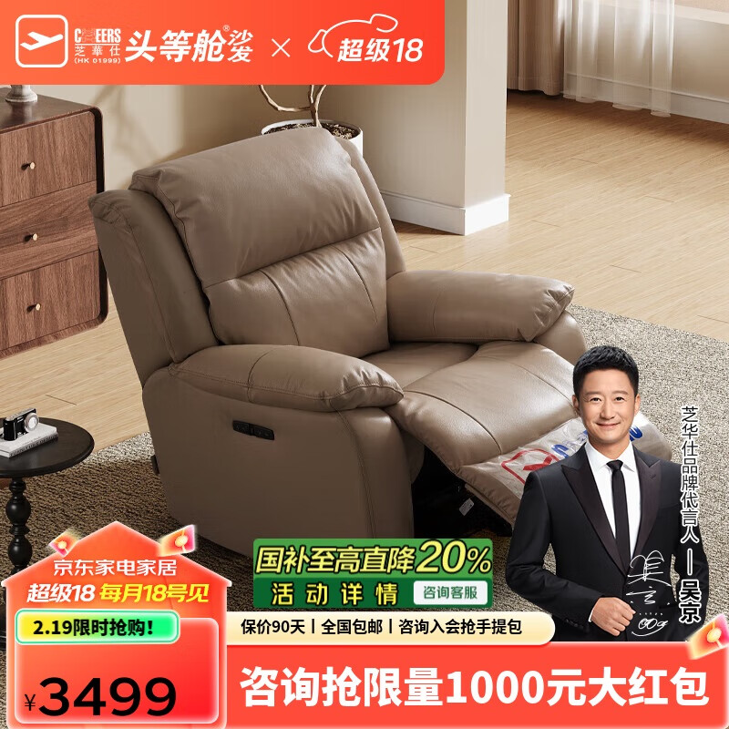 芝华仕(CHEERS)头等舱智能椅皮单椅功能可躺摇按摩单人沙发芝华士懒人椅30320棕价格:3499.00元!